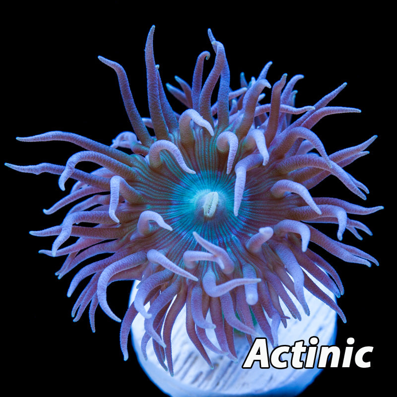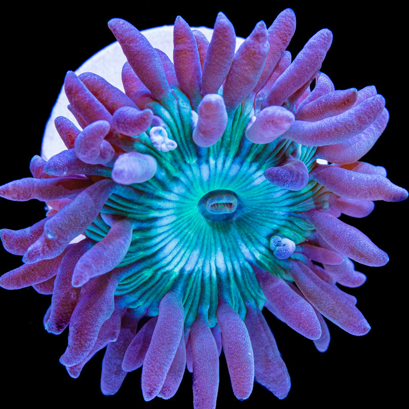 Our Aussie Teal Duncans have a teal/green center and purple tentacles. A very peaceful and easy to care for coral. Expect 1-2 heads per frag.