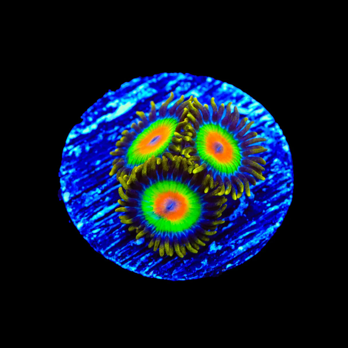 These colonial polyps attach themselves to hard substrates such as rocks, rubble, or dead coral skeletons, creating dense mats or carpets. In their natural habitat, Zoanthids contribute to the biodiversity of the reef, offering shelter and surface area for small reef inhabitants like shrimp, crabs, and gobies.